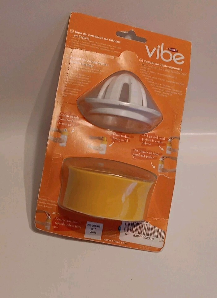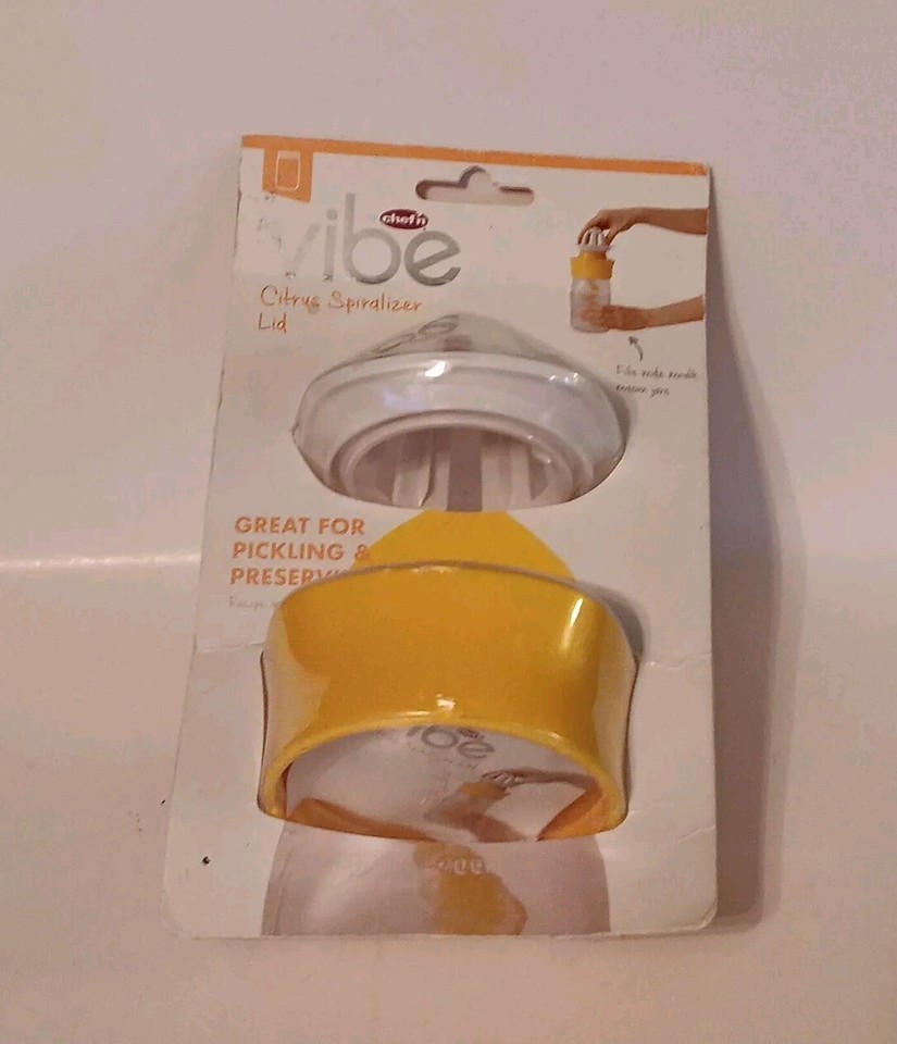 Introducing the Vibe Chef'n White/Yellow Plastic Citrus Spiralizer and Reamer, a must-have kitchen tool for all citrus lovers out there! This amazing product allows you to effortlessly spiralize and ream citrus fruits, making it a breeze to create delicious and healthy meals. Crafted with high-quality plastic material, this spiralizer and reamer is built to last and is perfect for everyday use. Its white and yellow color combination adds a touch of elegance to any kitchen and is sure to impress your guests. So why wait? Get your hands on this amazing product today and experience the ease of cooking with citrus fruits! This item is new in the package with some wear to the packaging. WIDE MOUTH JAR NOT INCLUDED! See pictures