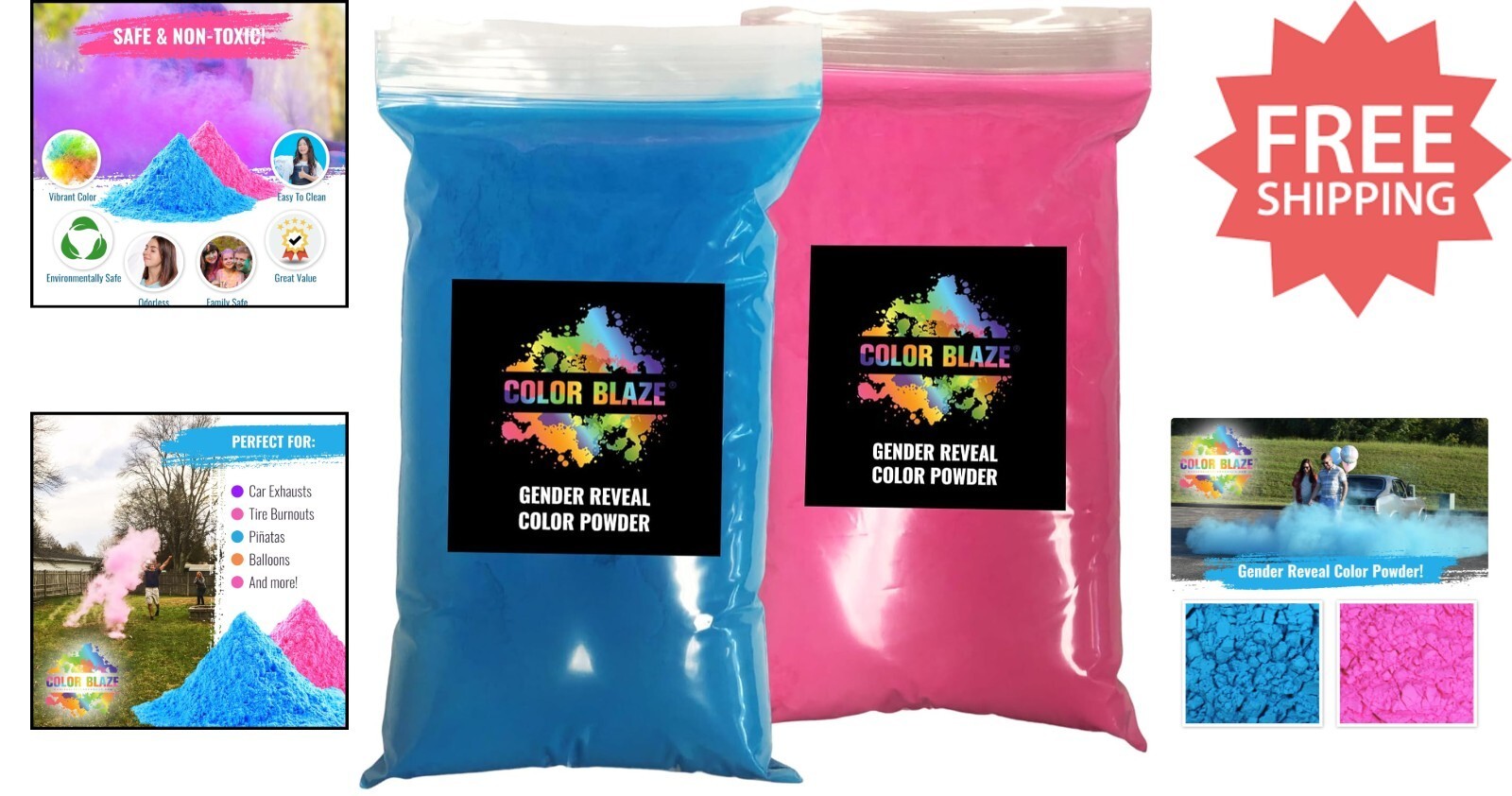 Unleash your creativity with the vibrant Color Blaze powder, perfect for unforgettable gender reveal celebrations. This kit includes 2 pounds of dazzling blue and pink powders, ideal for use with balloons, pinatas, exhausts, and more. Easy to clean and made with food-grade, non-toxic ingredients, our color powders ensure a safe, fun experience for the whole family. Capture stunning moments with long-lasting, vivid colors that make your photos and videos truly spectacular. Create lasting memories and reveal your baby's gender in a fun, unique way with Color Blaze!