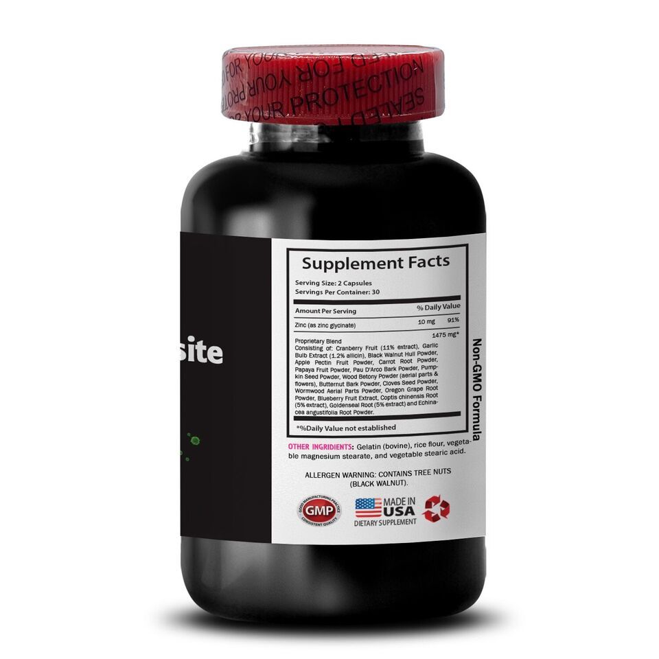 ANTI-PARASITE COMPLEX: Our powerful dietary supplement designed to support a balanced internal environment and promote optimal well-being. This advanced formula combines the natural benefits of Cranberry Fruit, Garlic Bulb Extract, Black Walnut Hull Powder, Apple Pectin Fruit Powder, Cloves Seed Powder, Wormwood Aerial Parts Powder, Oregon Grape Root Powder, Blueberry Fruit Extract, Goldenseal Root (5% extract) and Echinacea angustifolia Root Powder with a blend of potent ingredients known for their properties.
