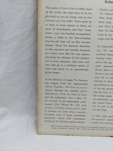 Vic Damone This Game Of Love Vinyl Record