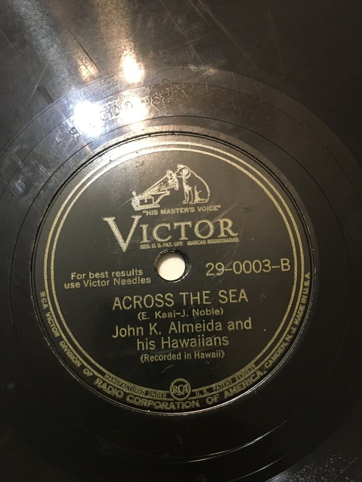 - Victor 10” 78 John k Almeida Across The Sea / Dorsey Hawaiian War Chant 29-0003