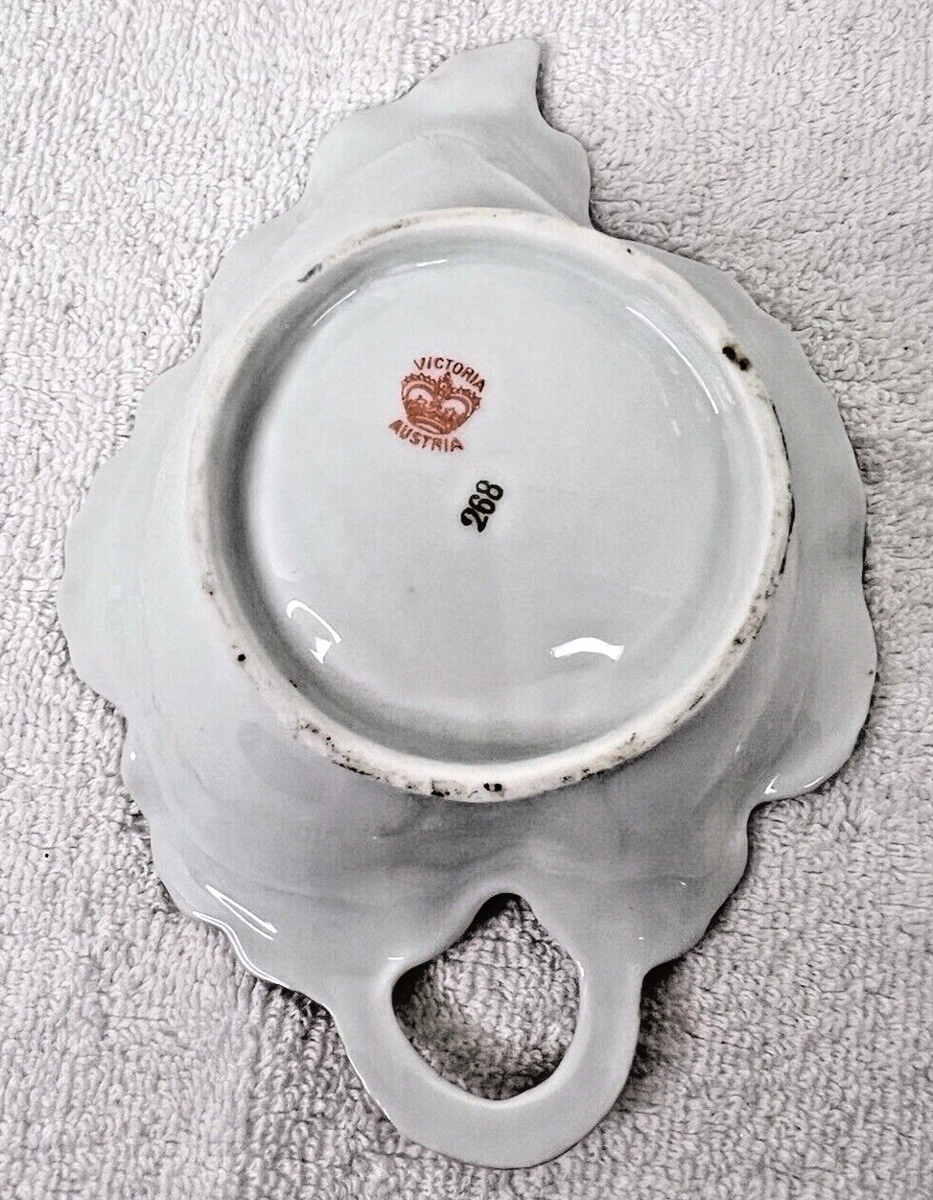 - Victoria Austria Leaf Shaped Bowl w Beautiful Woman Bowl w Handle Wide Gold Band