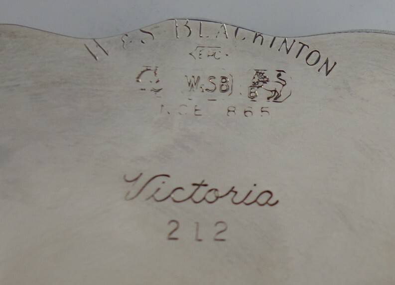 Pretty Victoria by Blackinton silverplate oval vegetable dish marked #212. The piece measures 13 1/2" x 9 3/4" x 1 3/4". It is not monogrammed and is in very good condition with minor surfaces scratches, as can be expected with age. Charming!