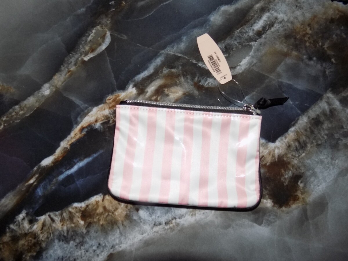 - Victoria's Secret Beauty Rush Mini Bag Makeup Pink Stripe Coin Purse NEW