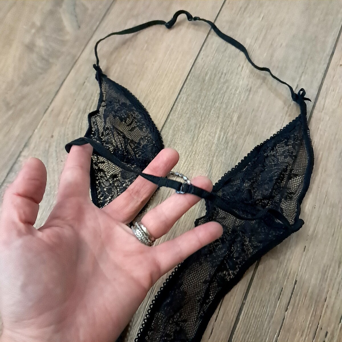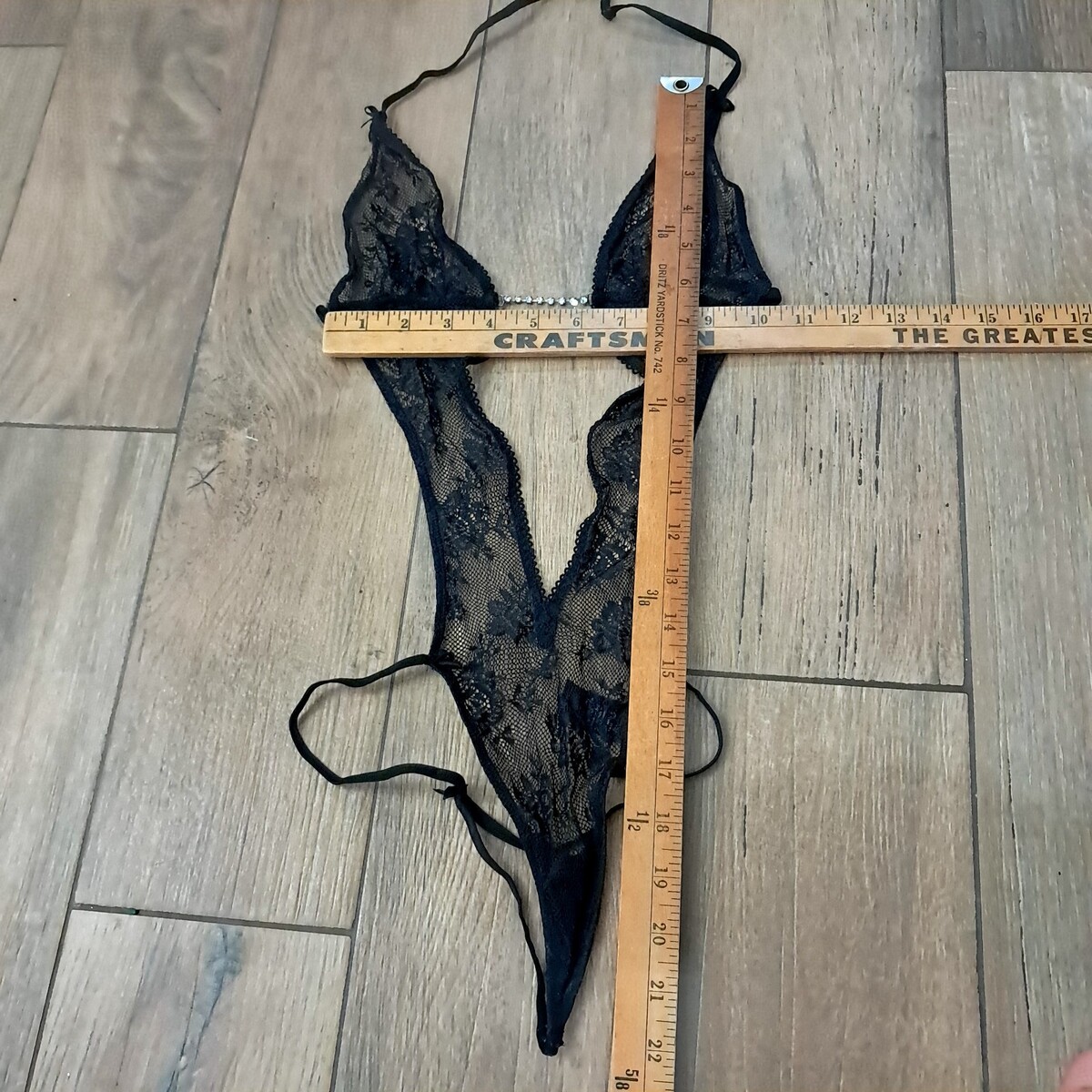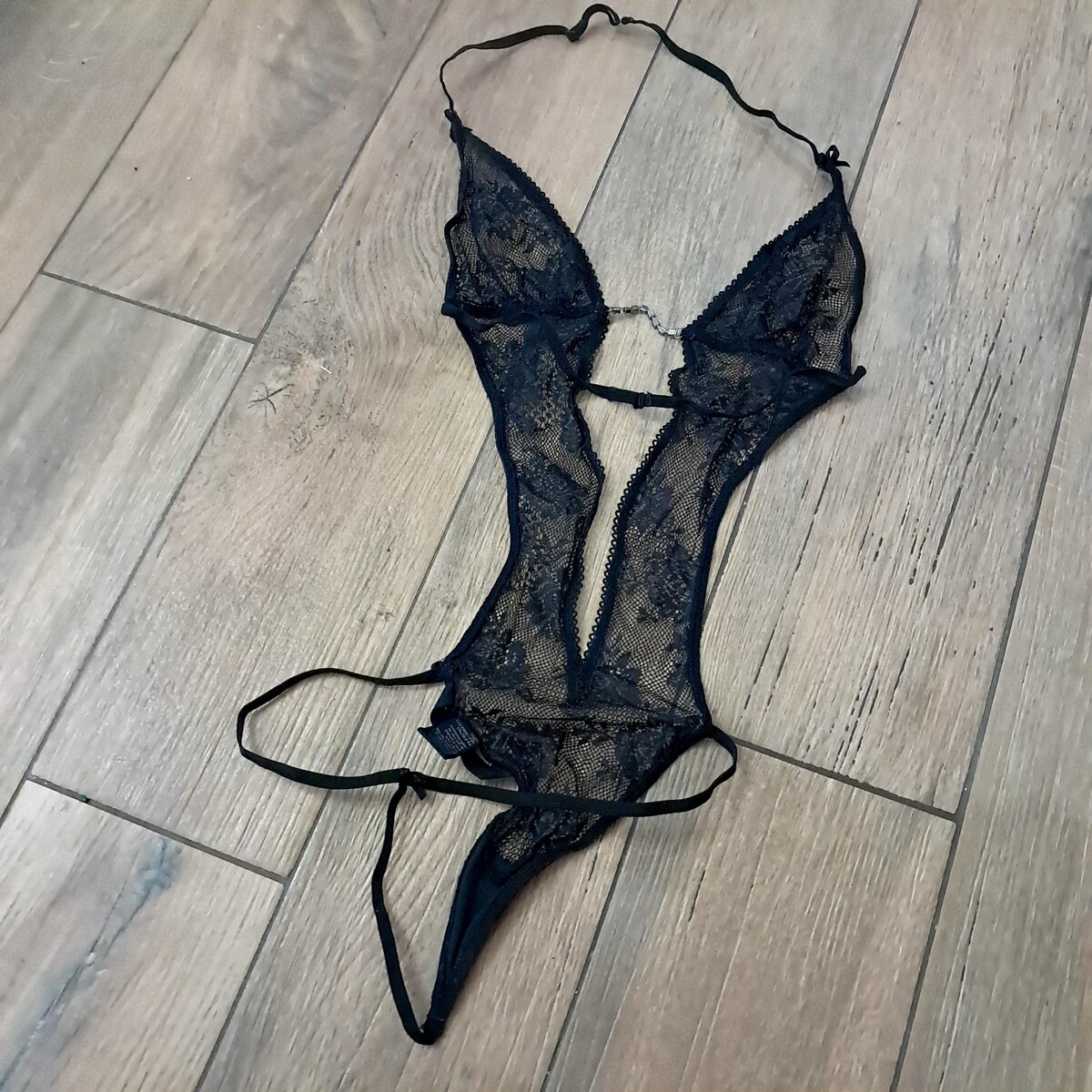 - Victoria's Secret Black Lace Bodysuit Thong Rhinestone Sz Small sheer Vintage