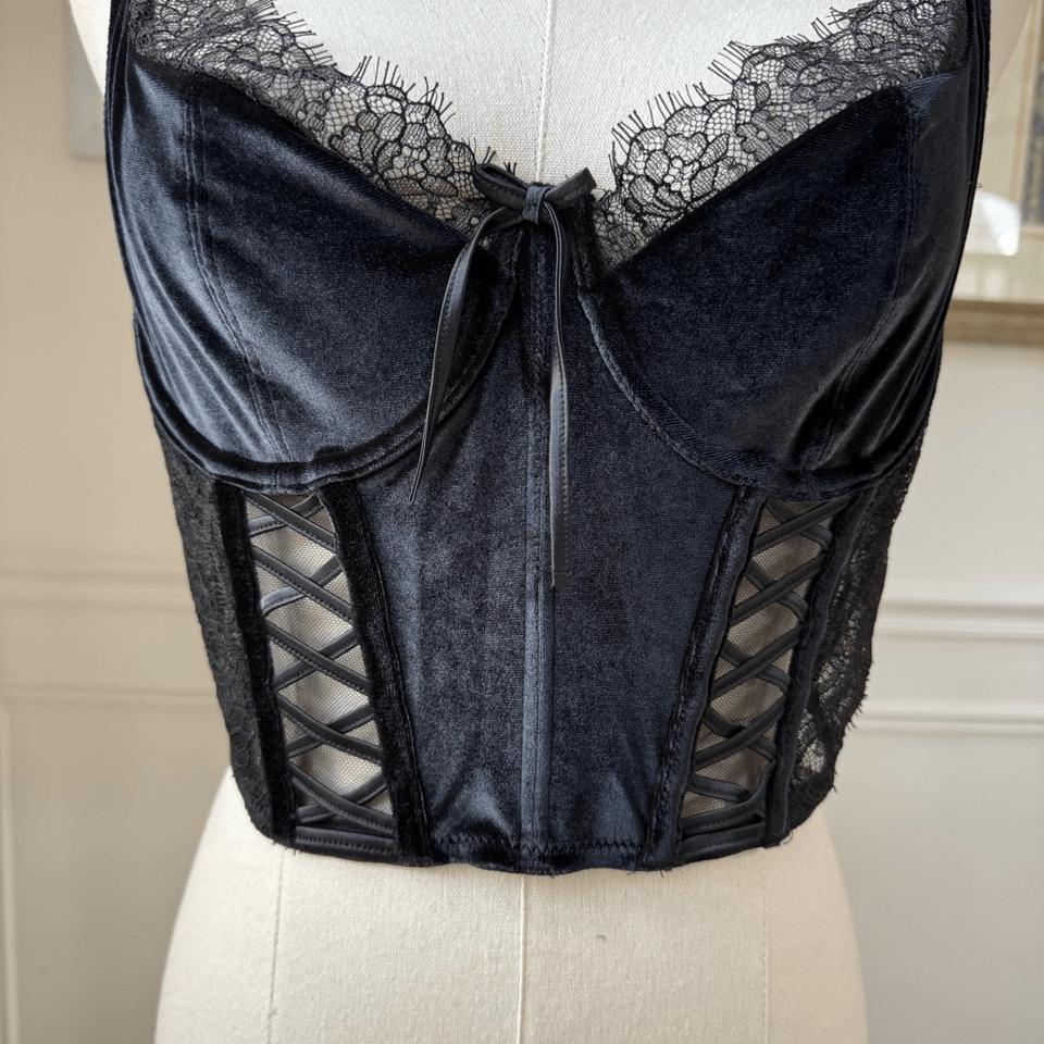 - Victoria’s Secret Dream Angels Black Velvet Lace Corset Top $99 L