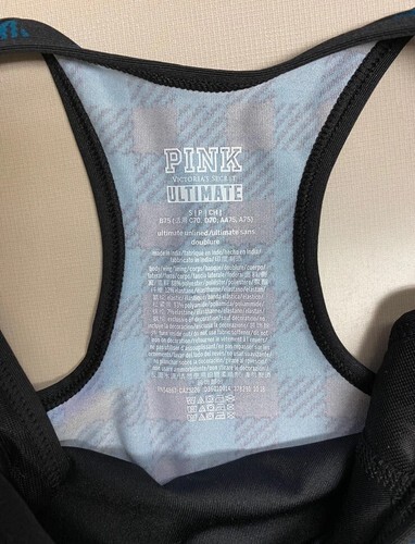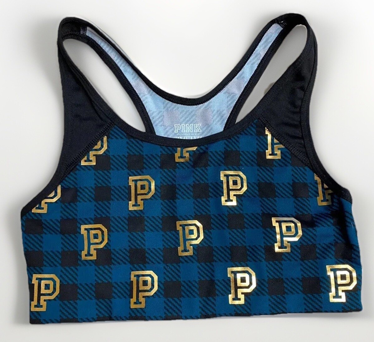 - Victoria's Secret PINK Sports Bra Ultimate Plaid Black Green Gold Lined S Small