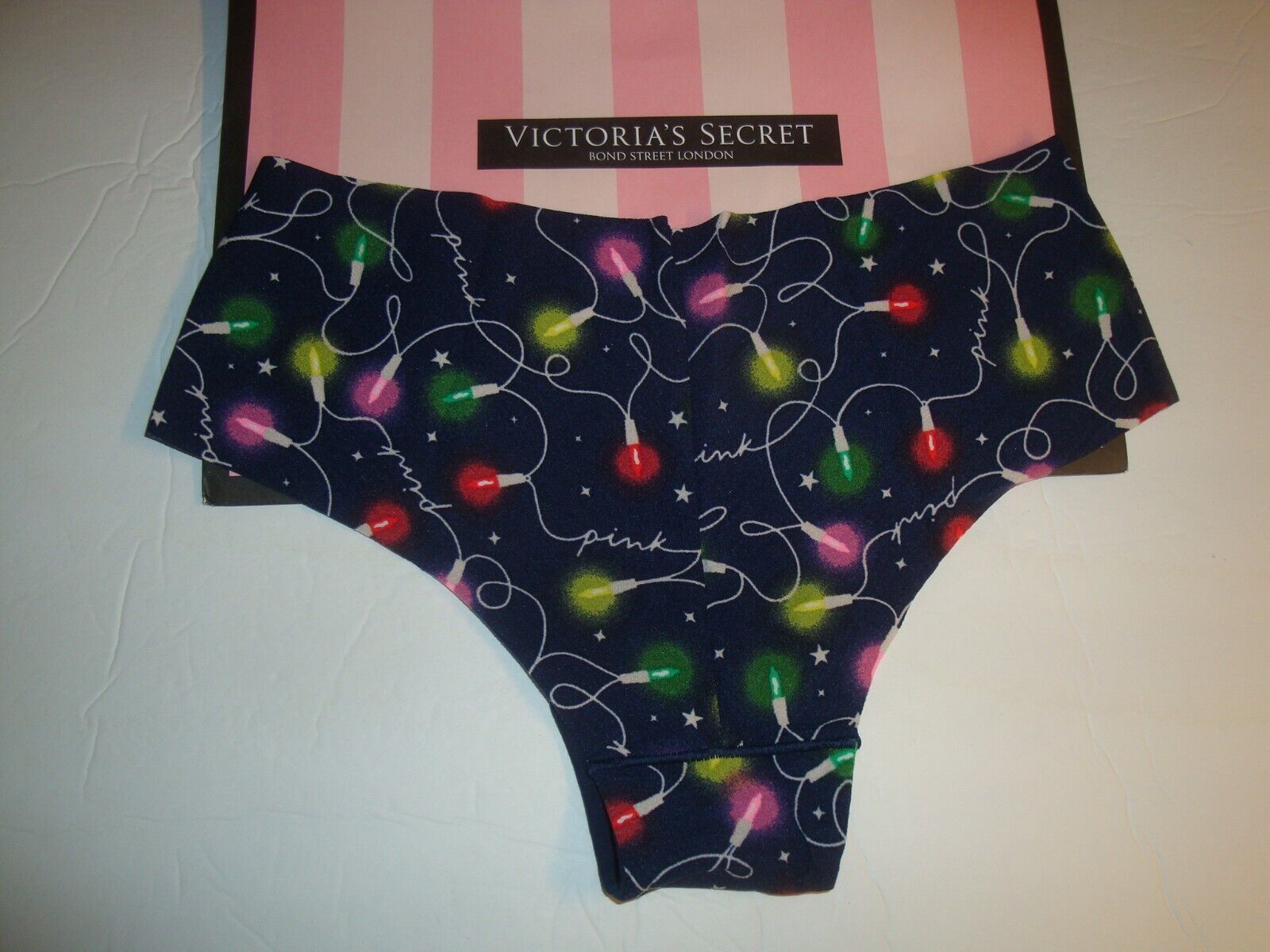 - VICTORIA'S SECRET PINK NO SHOW CHEEKSTER PANTY BLUE W/CHRISTMAS STRING LIGHTS S