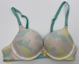 Victoria's Secret Push-Up Bra Padded Aqua Blue Yellow Camo Print Women's 32B