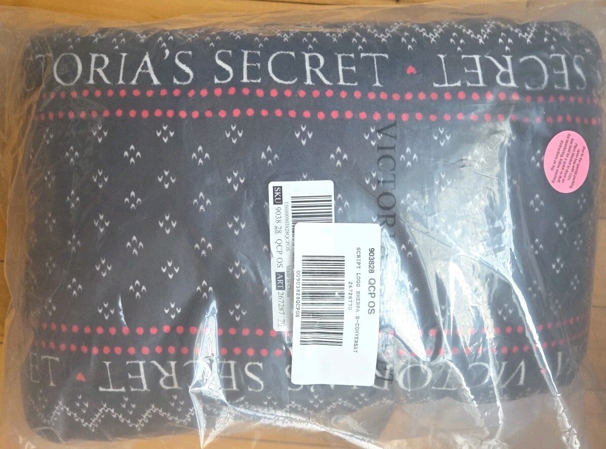 - VICTORIA’S SECRET SHERPA Blanket HOLIDAY '23 BLACK FAIR ISLE SCRIPT LOGO NEW