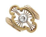 - Victorian 14k Gold Ring w/Wire Work and Genuine Diamond Set in Platinum (#J7289)