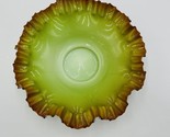 Victorian art glass Pistachio Green Cased Glass Ruffled Bowl W Ox Blood Red Rim.
