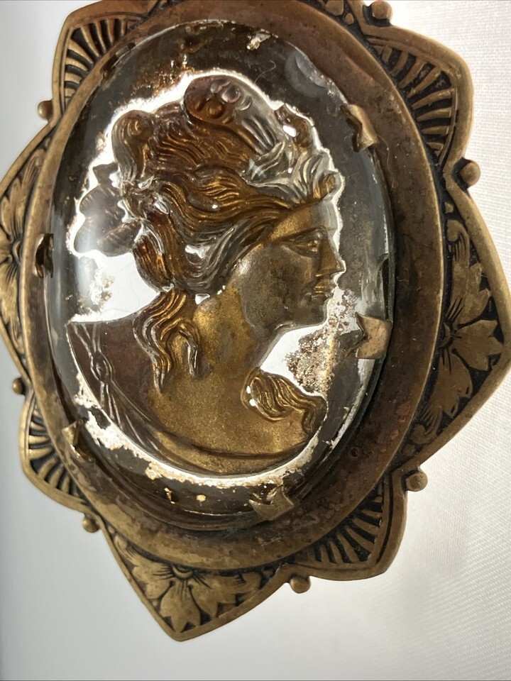 VICTORIAN GLASS DOME ITAGLIO BRASS CAMEO 2.75”X2” PENDANT