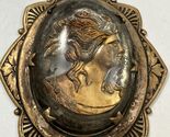 Vintage Victorian or antique glass cameo pendant depicting the profile of a woman with a classical hairstyle.