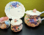 - Victorian Lace Collection by FITZ & FLOYD Hydrangea 4 pc Tea Set 1993 Vintage