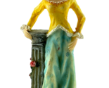 Victorian Lady Figurine Resin Sculpture Leaning on Column Blue Yellow Dress