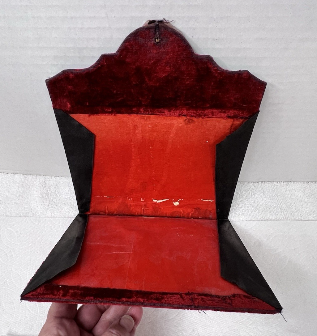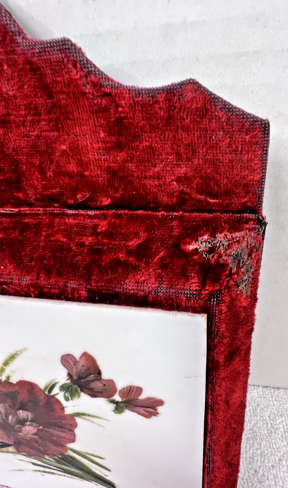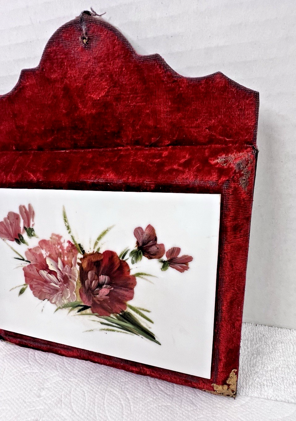 Victorian Red Velvet w Hand Painted Floral Milk Glass Wall Mail Holder