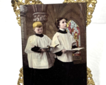 - Victorian Reverse Painting Glass 2 Choir Boys w Stained Glass Gold Metal Corners