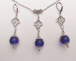 Beautiful Set of silver-tone Antique style Cobalt Blue necklace and earrings. Silver tone pendant Victorian style necklace and earrings. Boho necklace. Bohemian necklace and earrings. Romantic necklace and earrings. Beautiful necklace with same style earrings with Royal blue Murano glass handmade beads.