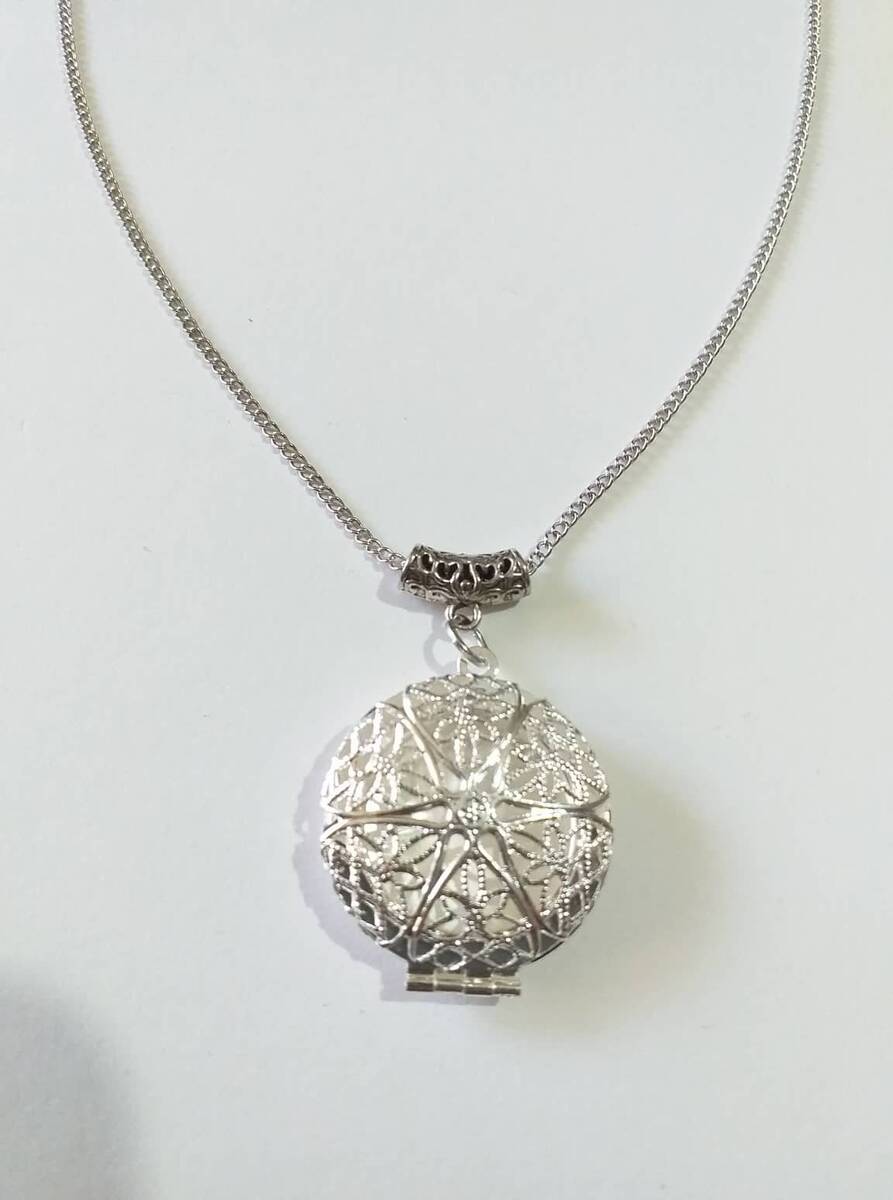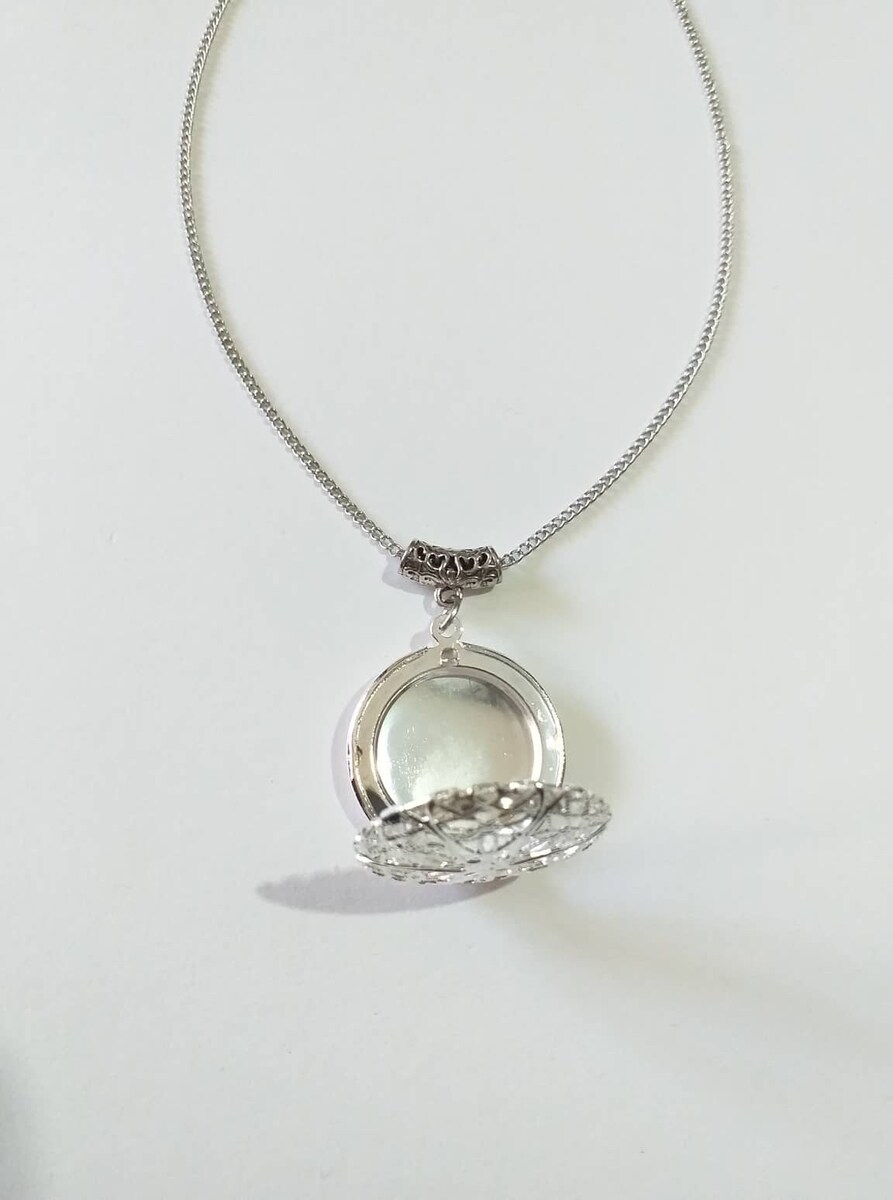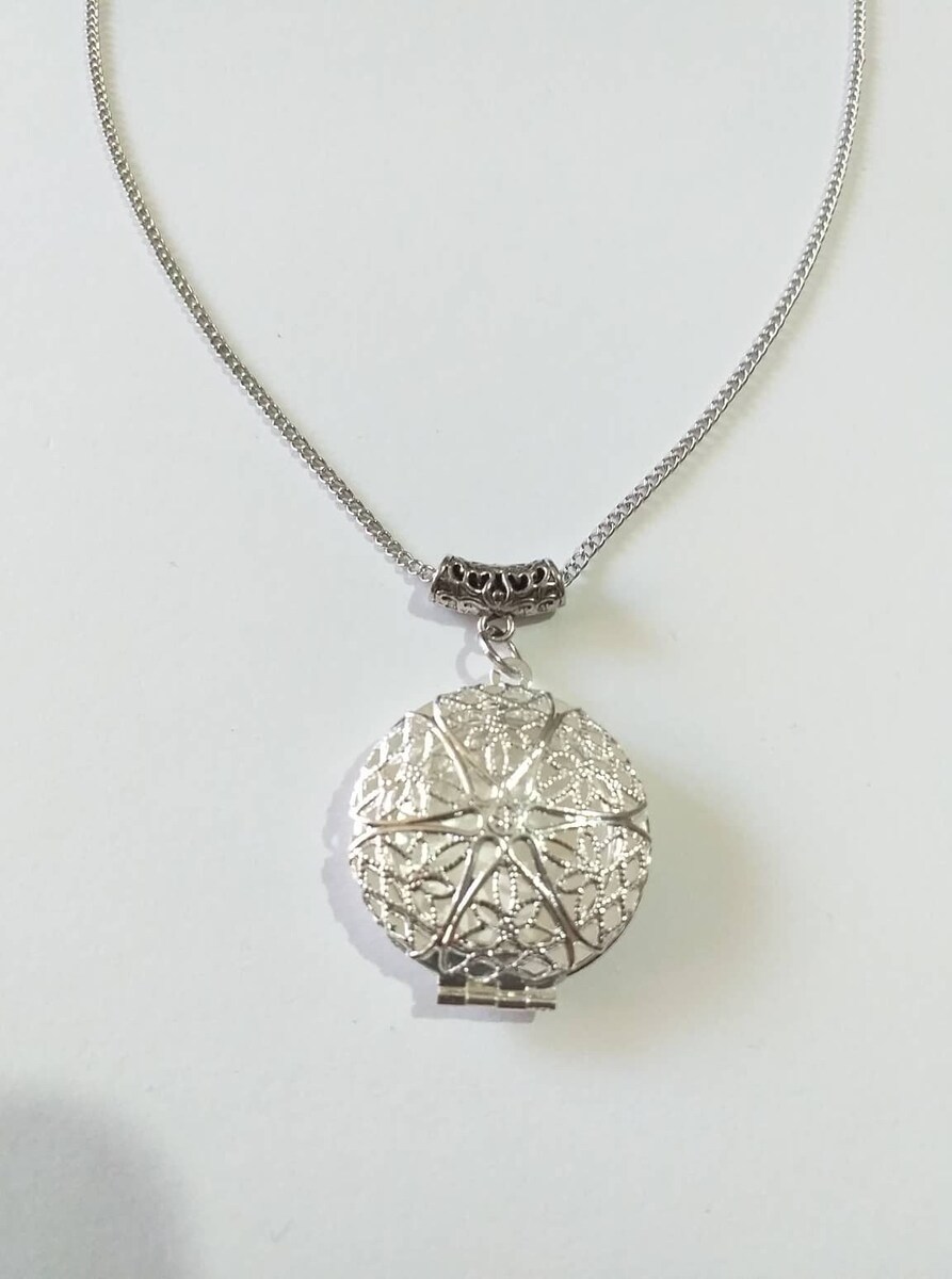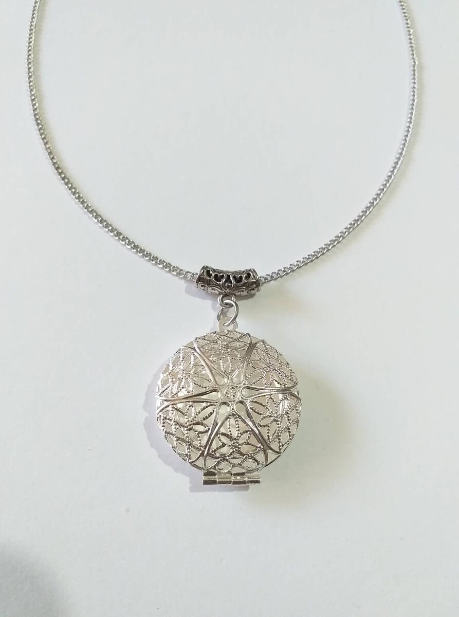 Material: silver-tone filigree locket pendant , silver-tone metal chain