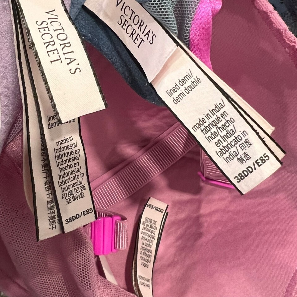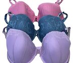 - Victorias Secret 3-Pack Lined Demi Bras 38DD Purple Pink Blue Lace