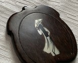 Vietnam, Retro Brown Wooden Mirror, 8cm x 7cm This is an old Vietnamese souvenir wooden mirror. It features an Aoyama woman design and is very nostalgic and cute. However, the mirror is showing some fading. It could be folded over and displayed at various angles, so it's still usable. It's palm-sized and quite compact. If you look closely, you can see some scratches, but that's just the nature of its age.