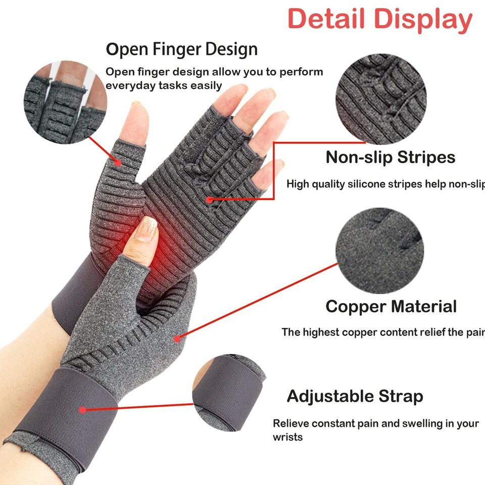 All-Day Pain ReliefErgonomic copper fit gloves with 4 sizes adapt to hand changes. Fingerless design maintains phone/texting ability. Non-slip palm pads provide relief even while driving.