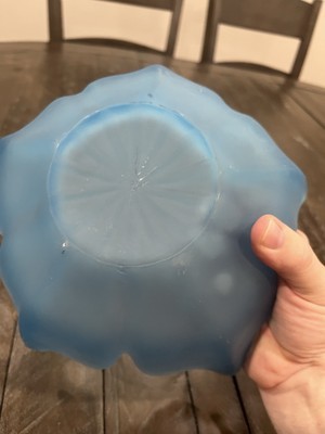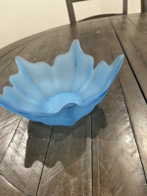 - Viking Cobalt Blue Frosted Satin Glass Lotus Flower Candy Dish 10" MCM Vintage