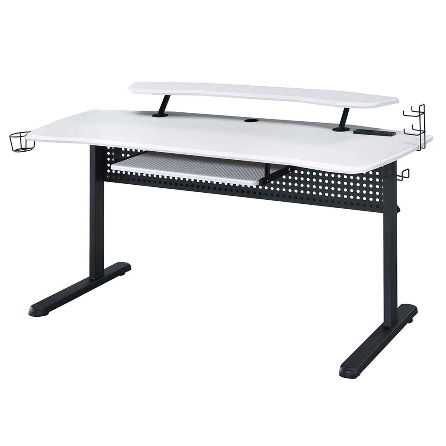- Vildre Gaming Desk w/USB, Black & White Finish