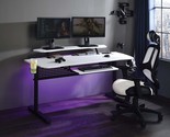 Full of industrial chic with a bit of modern glam, the piece has a sleek-lined metal frame with LED light that adds stunning visual effects. The brilliant game table will create an awesome home game room, with keyboard tray, controller racks and headset rack to keep gaming accessories you need within reach. The desk top shelf is long enough for two screen monitors and an open compartment under shelf is perfect for setting other peripherals.