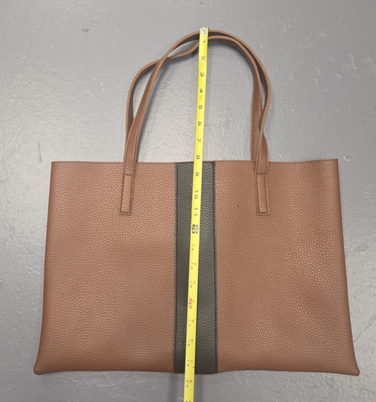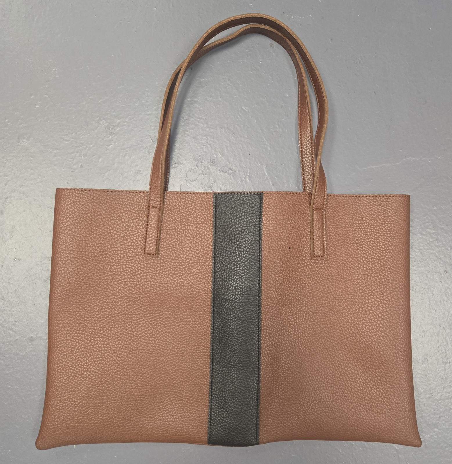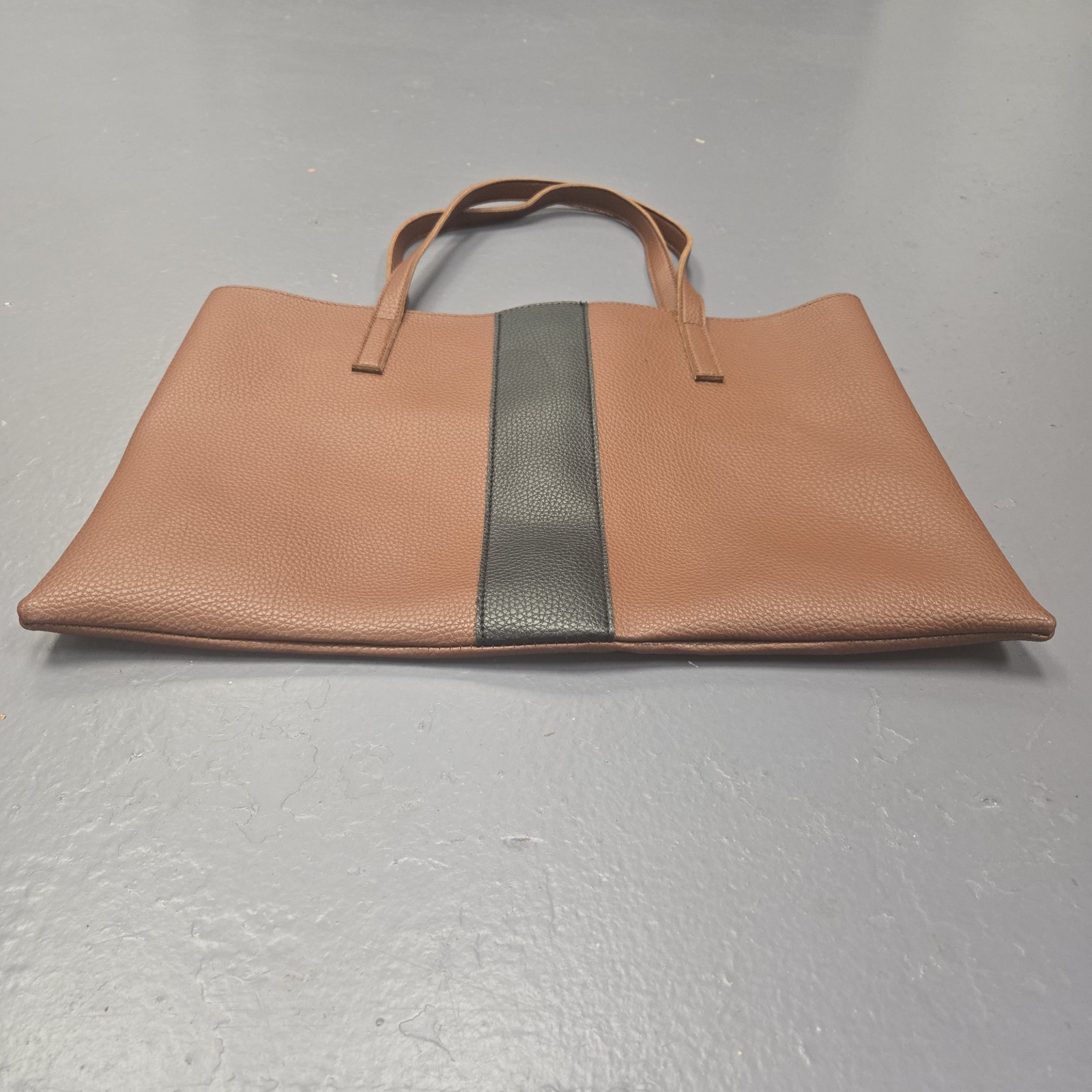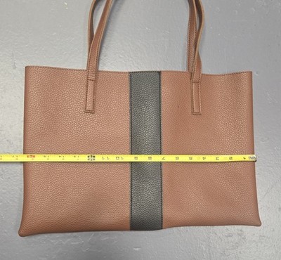 - Vince Camuto Luck Tote Brown Black Vegan Leather Large Shoulder Bag Purse