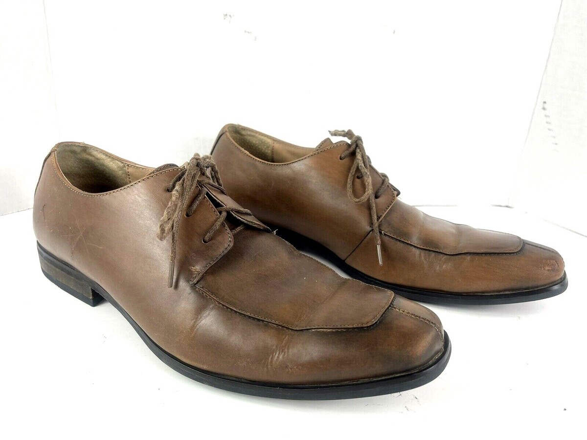- Vince Camuto Oxford Men 10.5D Conti Dress Shoes Brown Patent Split Apron Toe