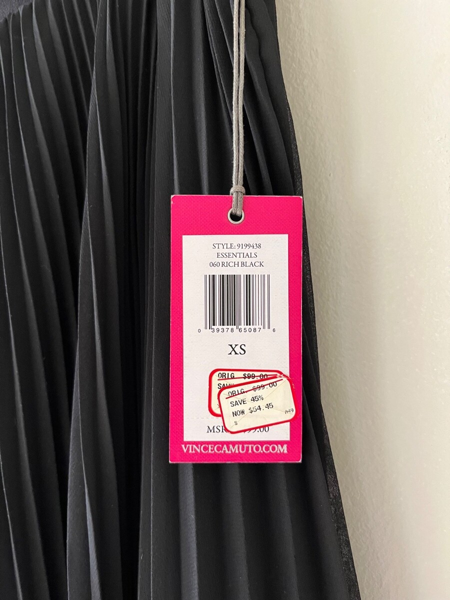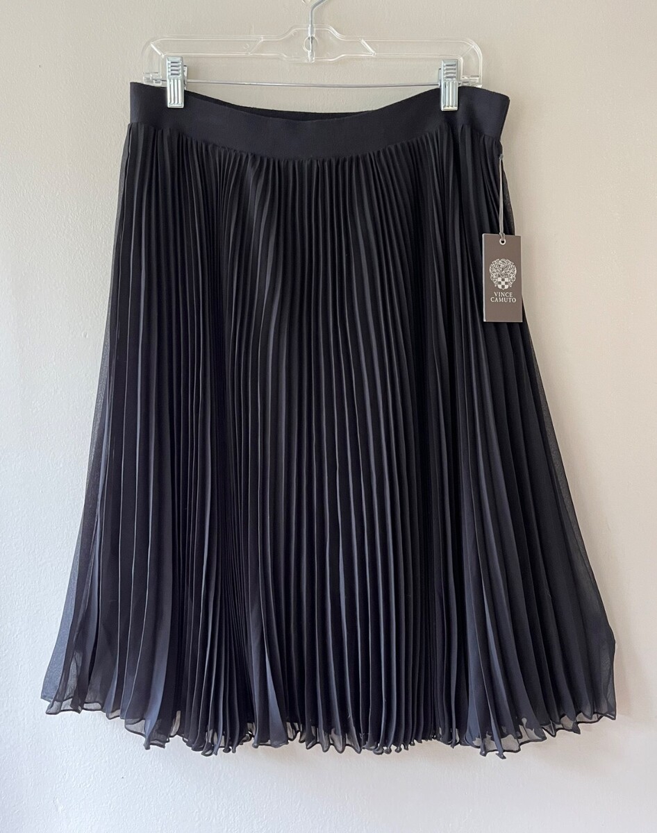 - VINCE CAMUTO Sz M Black Pleated Chiffon Midi Skirt Elastic Waist Pull On