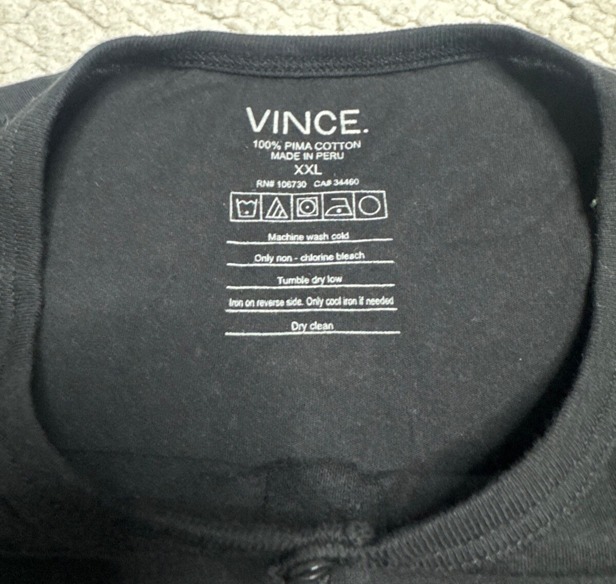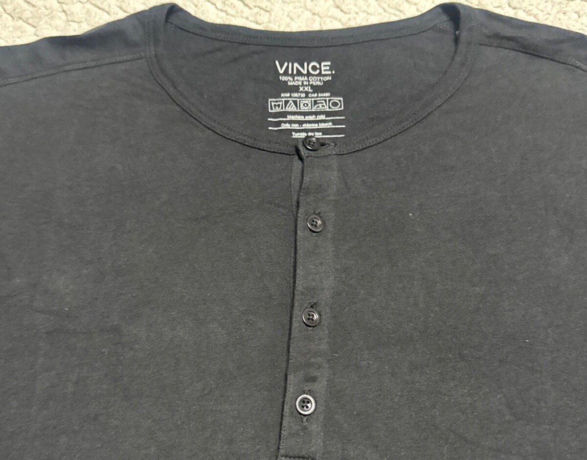 - Vince Men's Long Sleeve Henley Tee Black 100% Pima Cotton Size XXL NWT