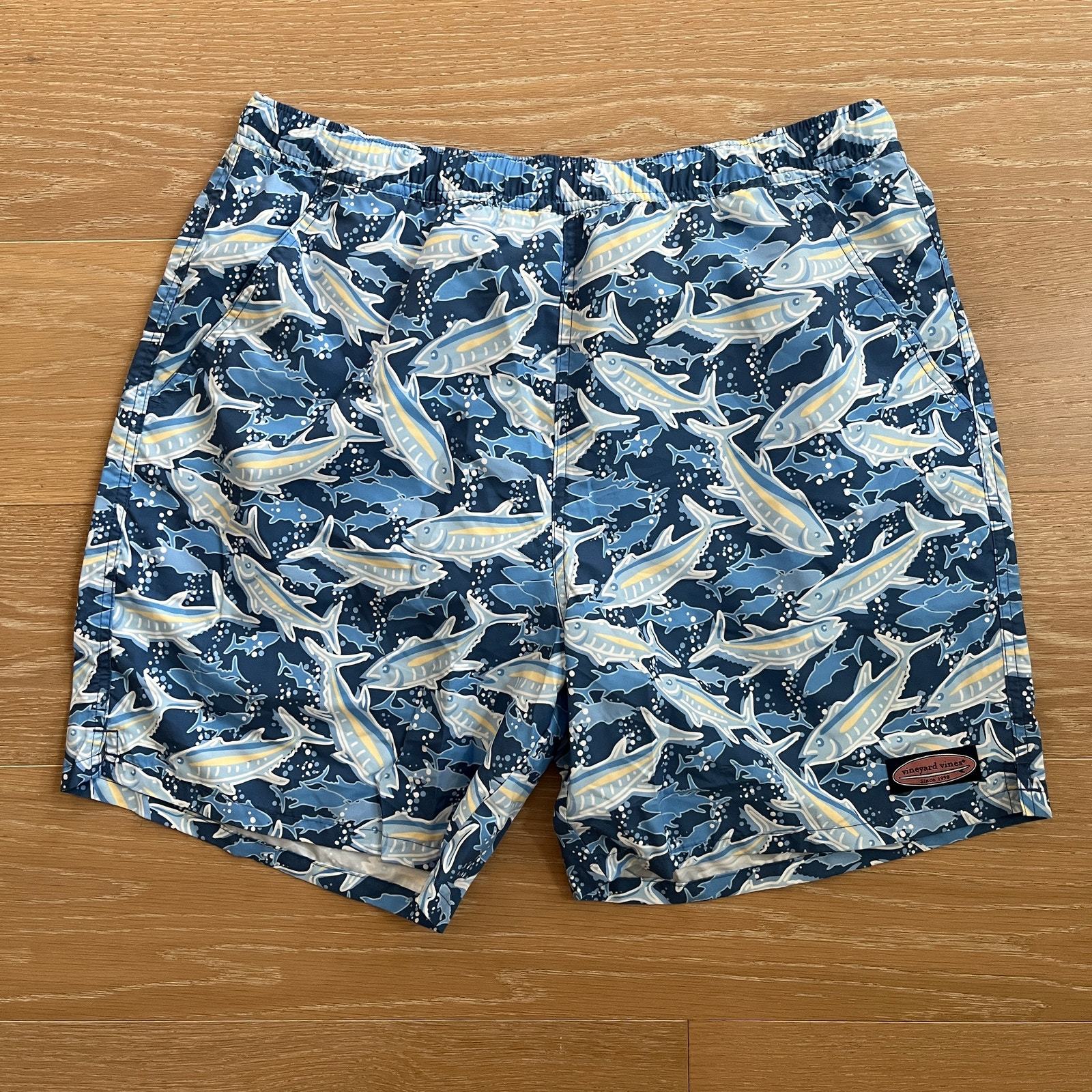 - Vineyard Vines Men's 7" Shark Print Swim Trunks Blue Large