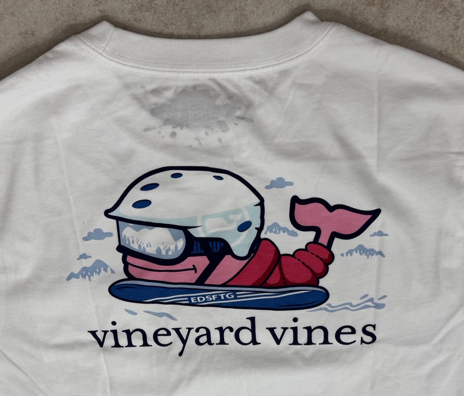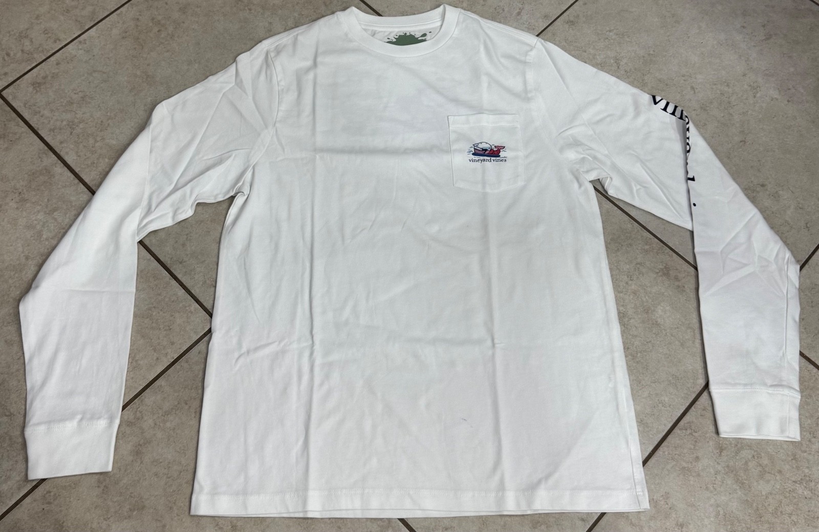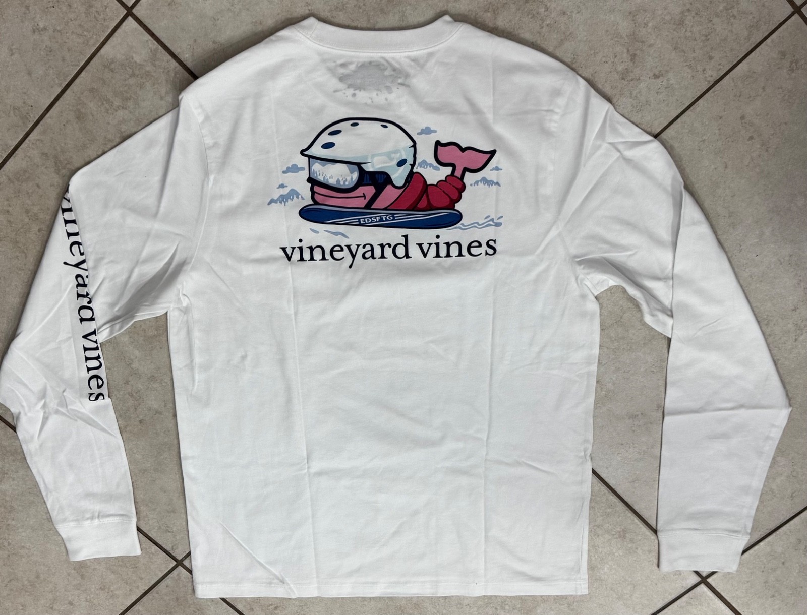 - Vineyard Vines Youth Long Sleeve White Crew Neck Whale Snowboard Shirt Size XL