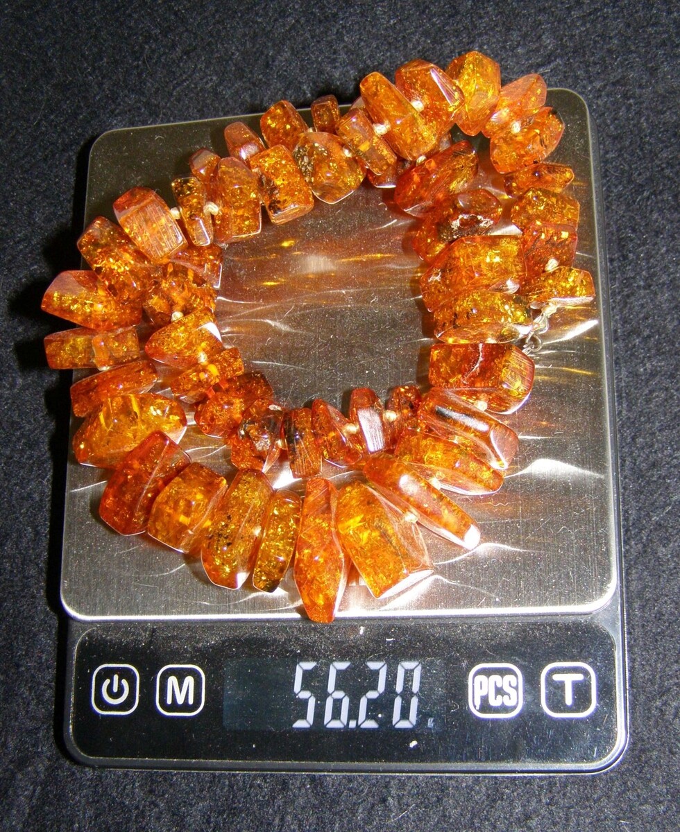VINT. BALTIC AMBER FACETTED HAND KNOTTED FLAT SHAPED BEADS w/ INCLUSIONS, COGNAC