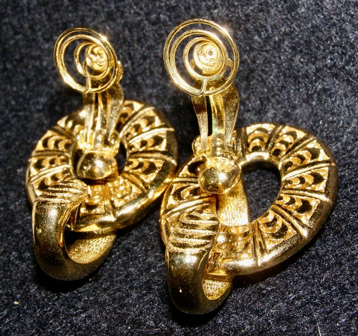 GOLD TONE CLIP-ON HOOPS w/ SPRING WIRE BACKS FOR COMFORT TENSION -