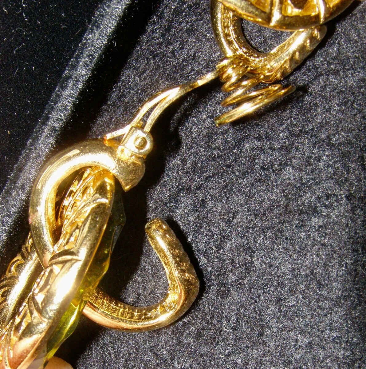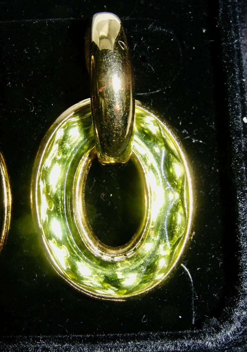 - VINT. YVES SAINT LAURENT OVAL DANGLE LOOP EARRINGS - FACETTED GREEN PEIDOT GLASS