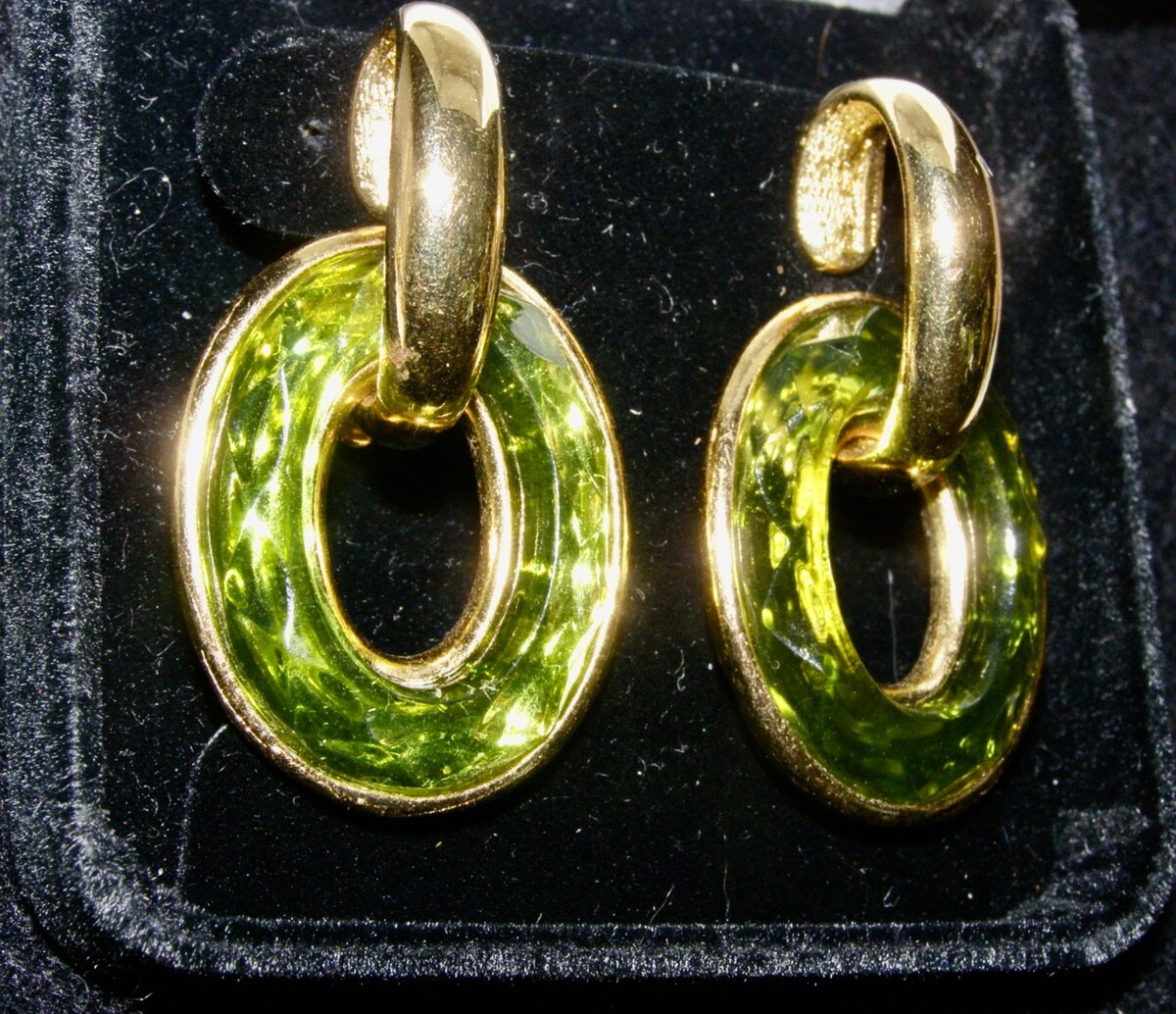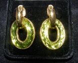 VINT. YVES SAINT LAURENT OVAL DANGLE LOOP EARRINGS - FACETTED GREEN PEIDOT GLASS
