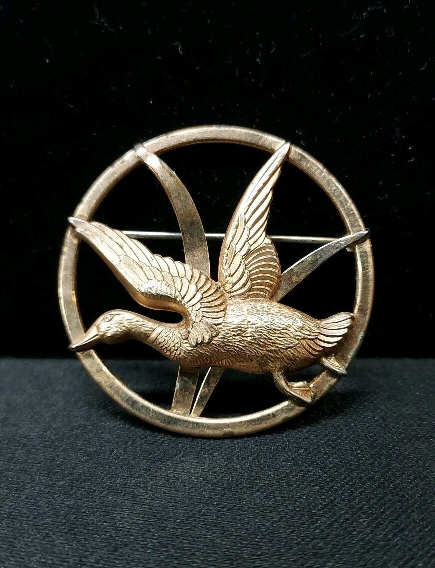 - Vintage 1/20th 12k Gold Filled H.S.B. Flying Duck Mallard Pin Brooch 7.17 Grams