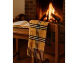 - Vintage 100% Cashmere Tartan Scarf Mustard Camel Plaid Made in Scotland 70x11