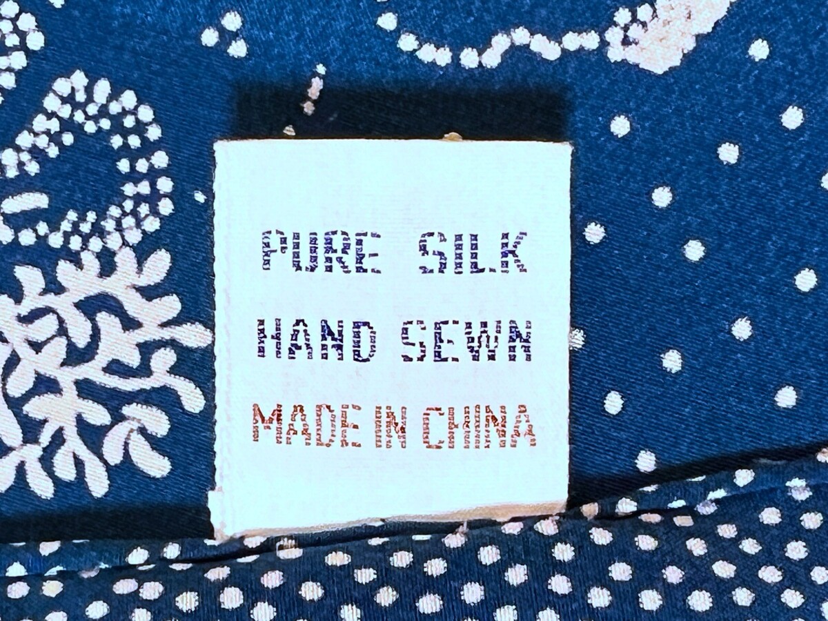- Vintage 100% Silk Scarf Happiness Made China Blue White Signed Bouchara