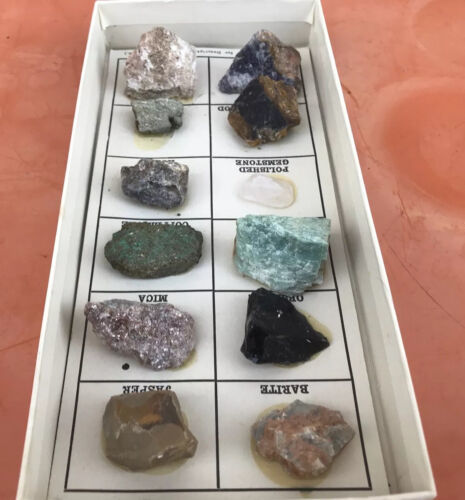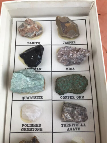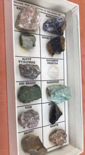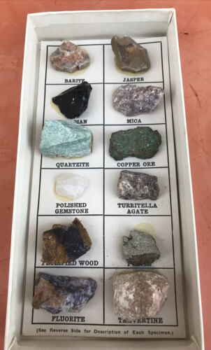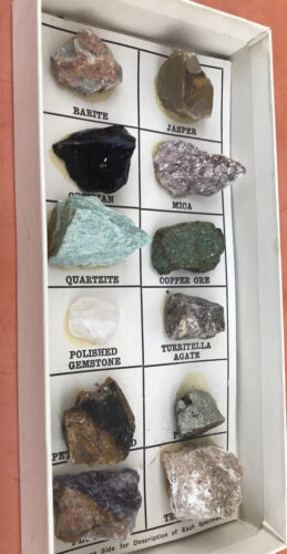 - Vintage 12 Rock & Mineral Collection Boxed Set Geo Science Merles Rock Box