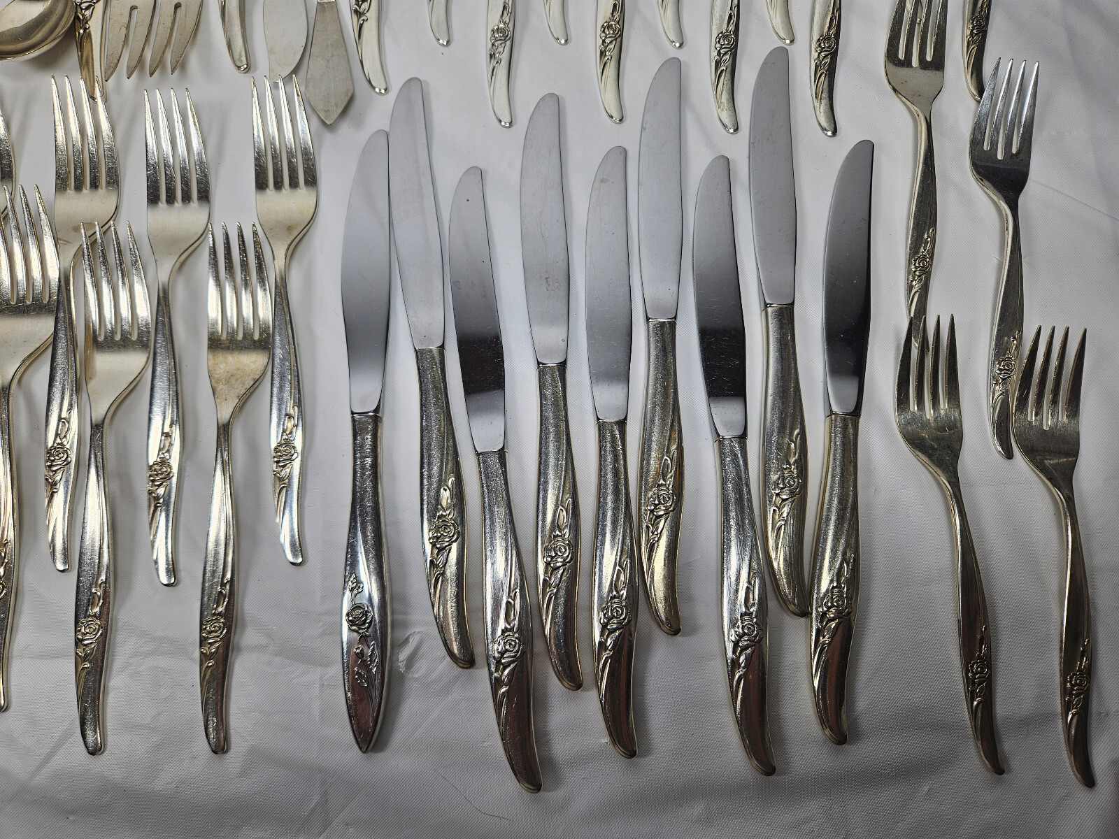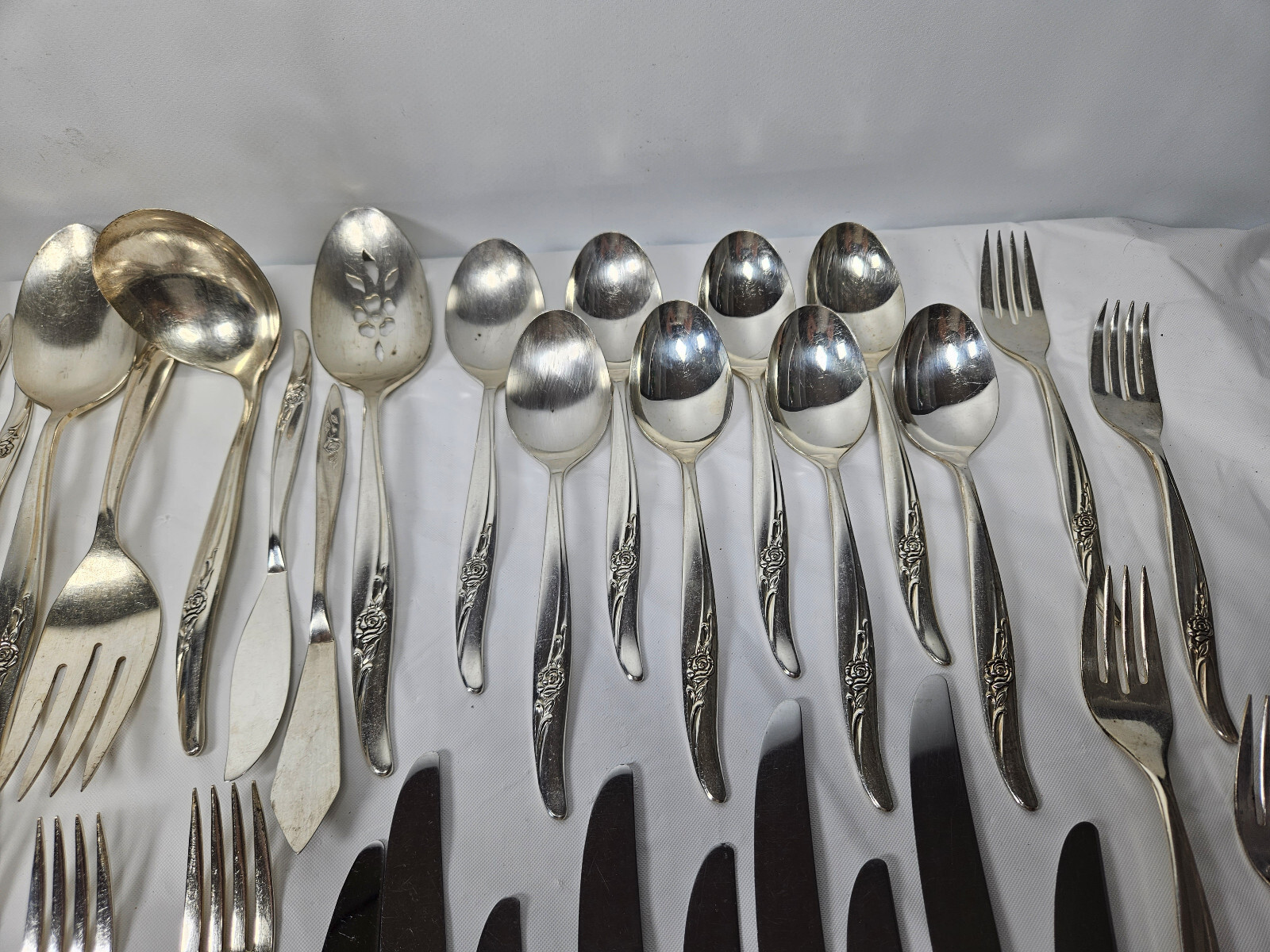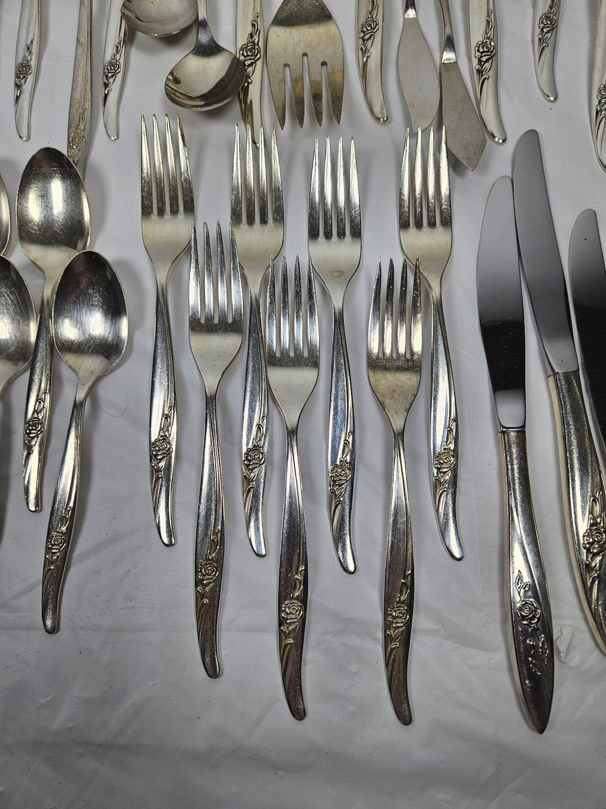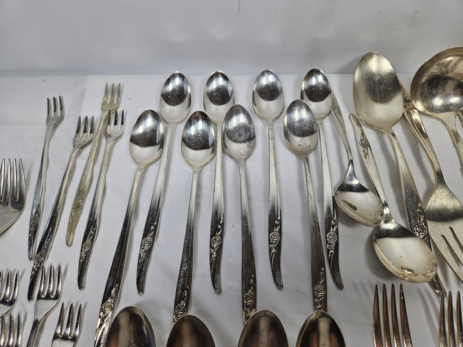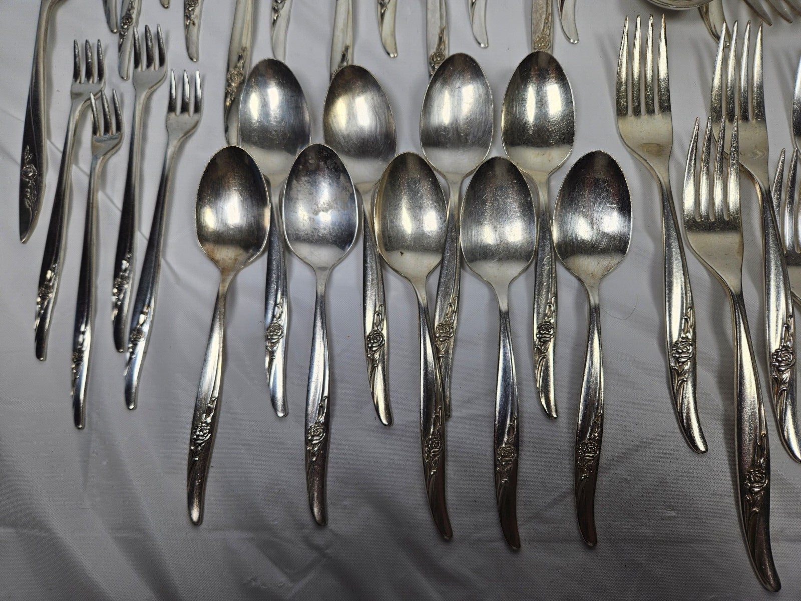 - Vintage 1881 Rodgers Oneida Community Rose Silver Plate Flatware 60+ Piece Lot