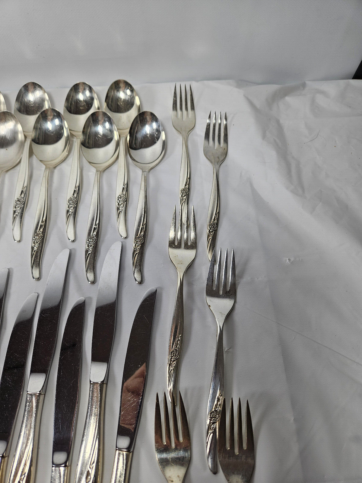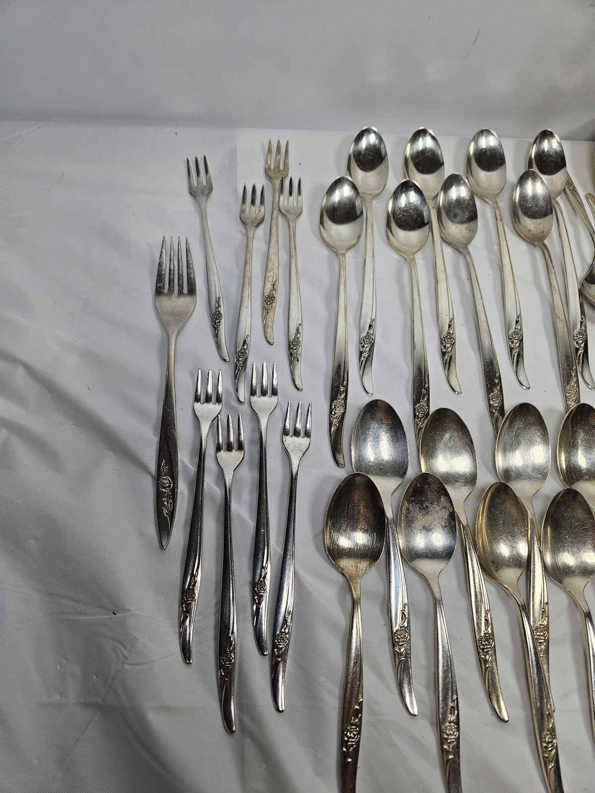Vintage 1881 Rodgers Oneida Community Rose Silver Plate Flatware