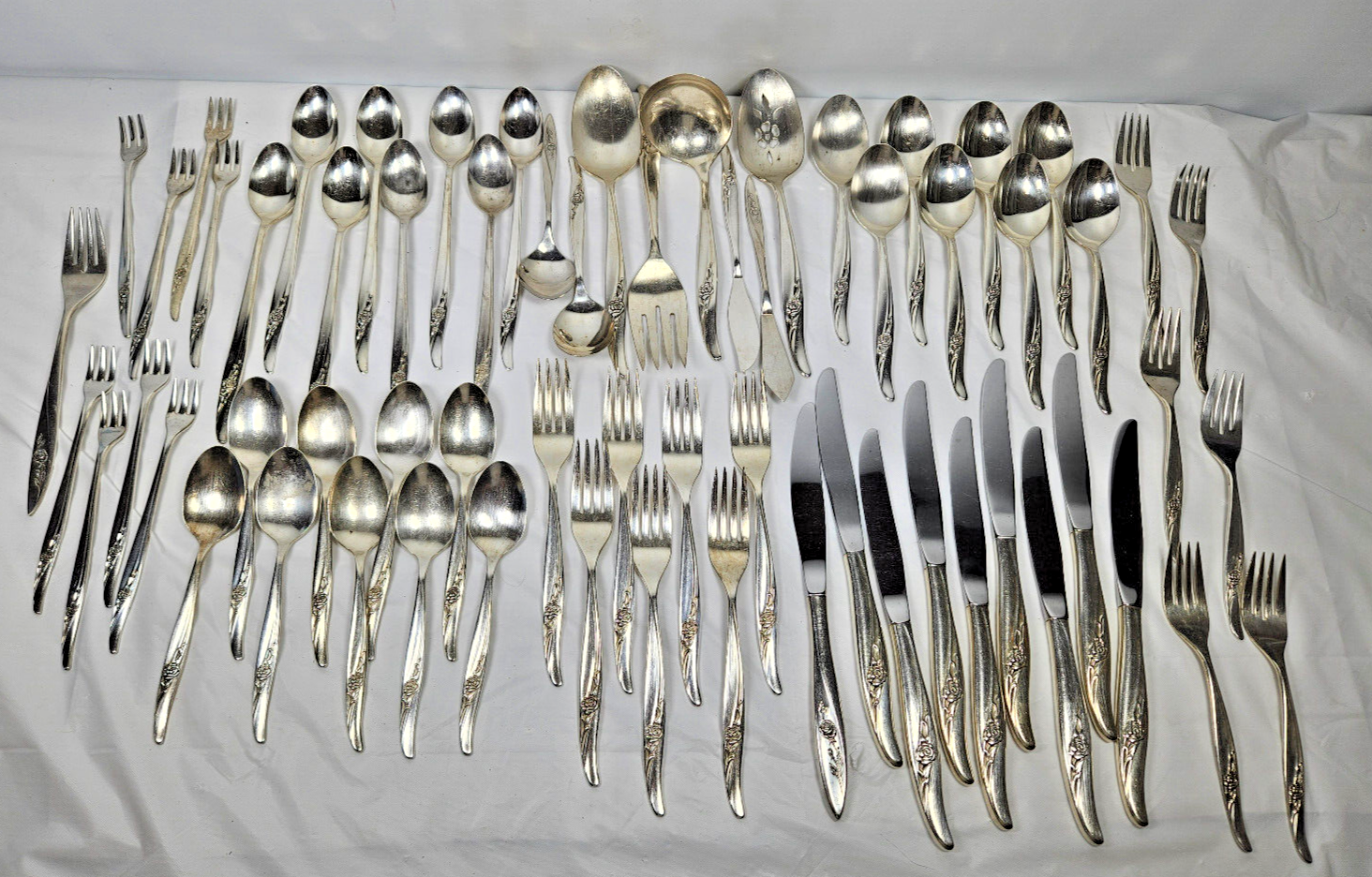 Vintage 1881 Rodgers Oneida Community Rose Silver Plate Flatware 60+ Piece Lot