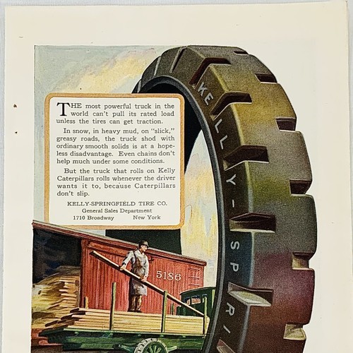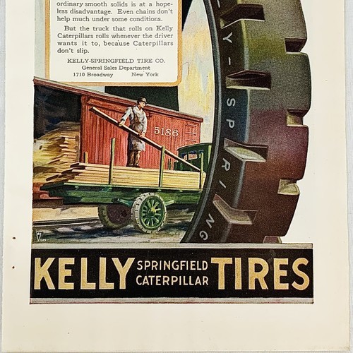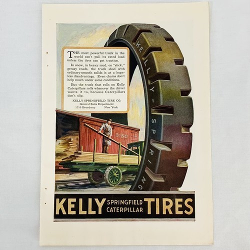 - Vintage 1920's Kelly Springfield Tire Magazine Print Ad Caterpillar 8" x 6"
