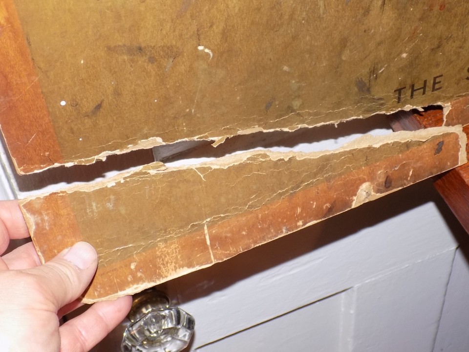 paper in one section, scuffs, holes, missing paper in spots, scratches and