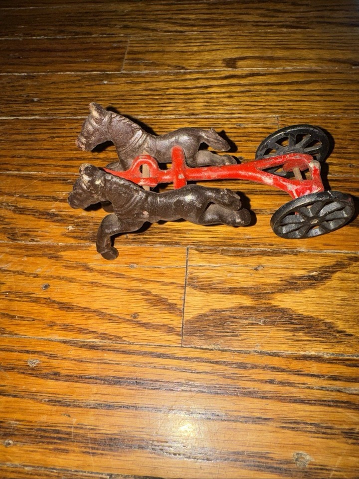 - Vintage 1930s Cast Iron Horse Drawn Fire Wagon - 2 Pieces That Connect. RARE